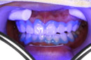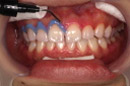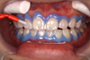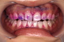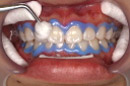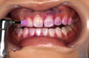 | 染め出しを行います (これは、染め出された歯についたタンパク質膜を、見やすくしてしっかりと落とすためです。) |